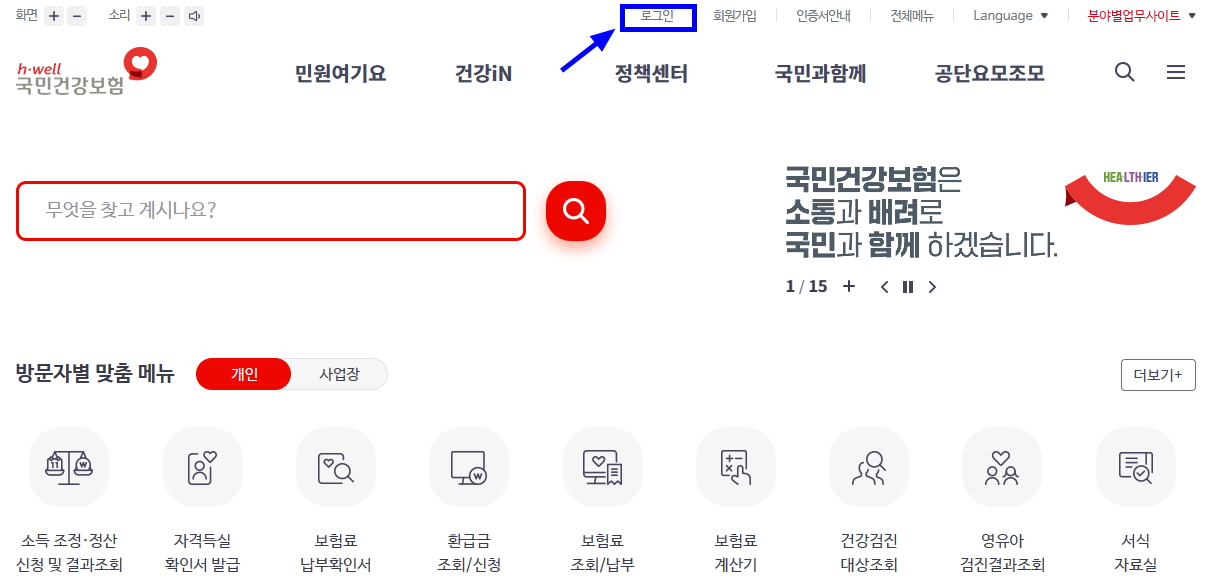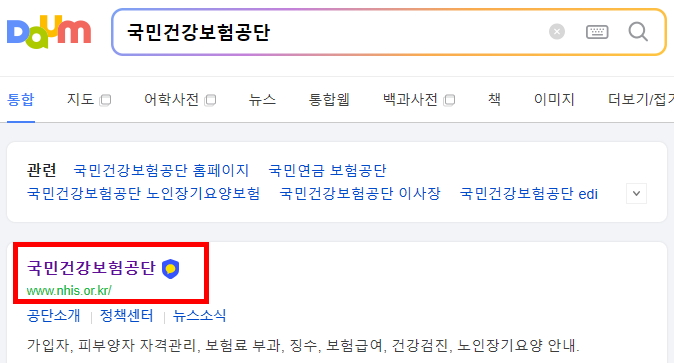 먼저 포털 사이트에서 국민건강보험공단을 검색해 홈페이지에 접속합니다.