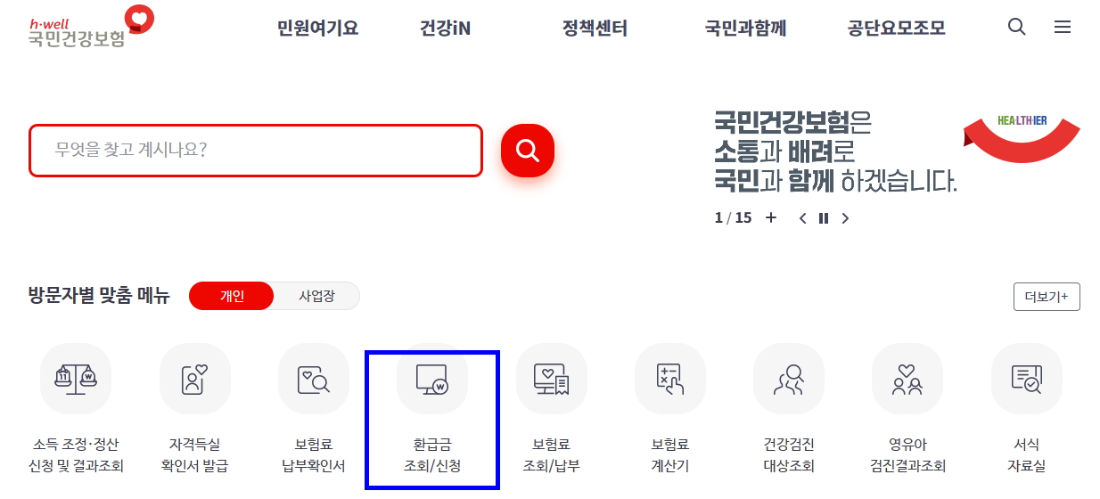 국민건강보험 환급금 조회 및 신청